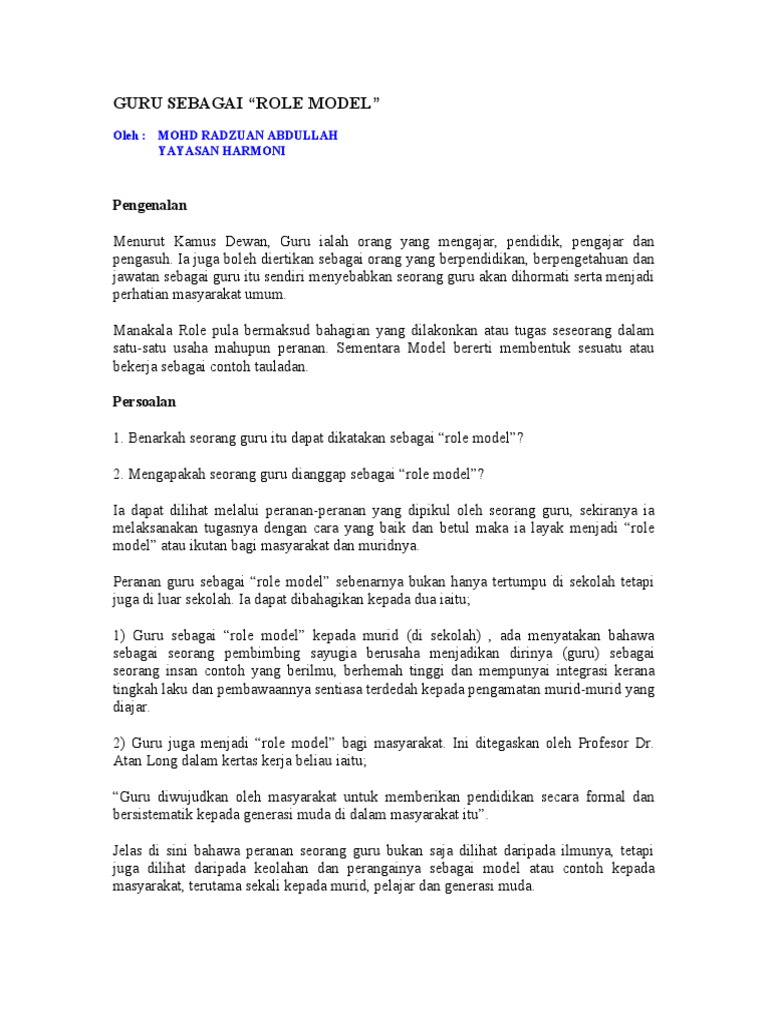Guru Sebagai Role Model Kepada Pelajar