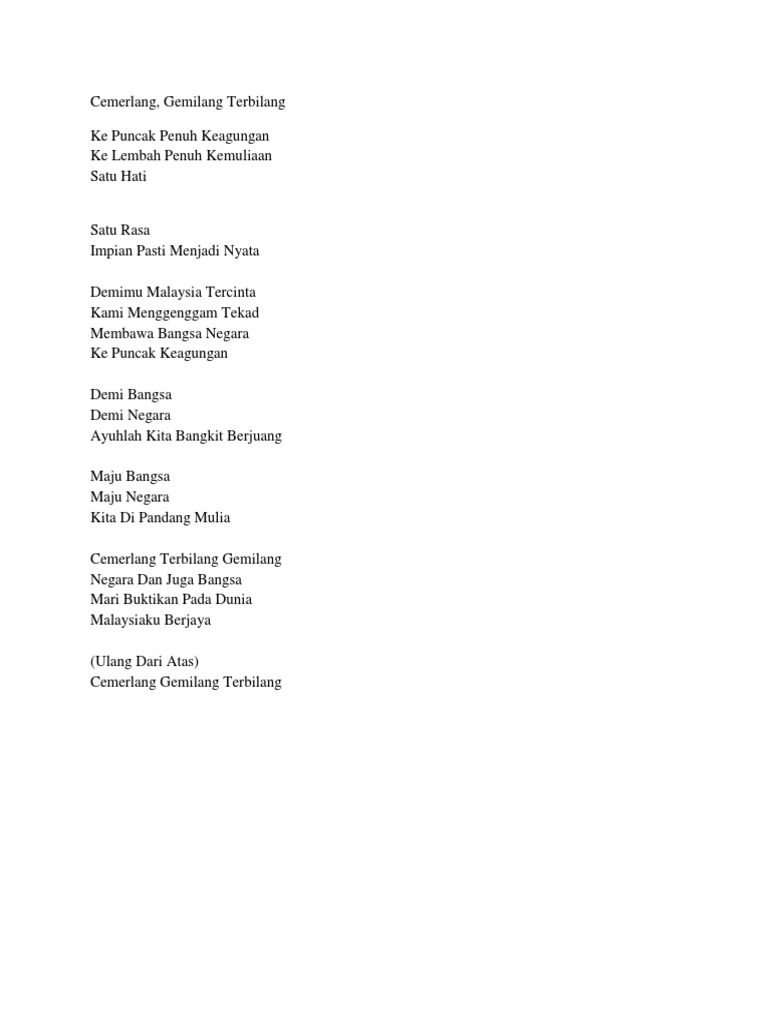Lirik Cemerlang Gemilang Terbilang Pdf Document