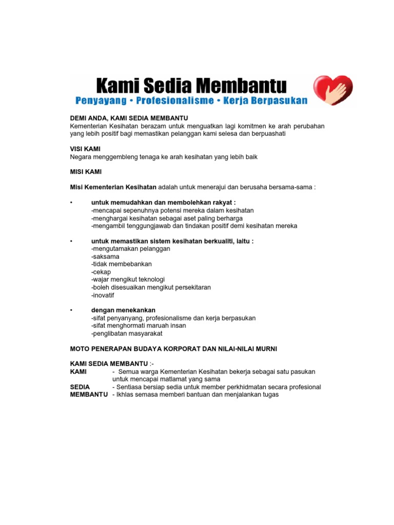 M2 Hospital Sentosa Kuching Lirik Lagu Kami Sedia Membantu Lagu Tema Kkm