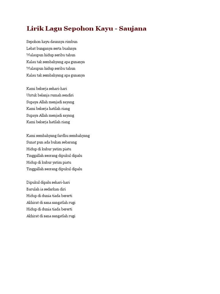 Sepohon Kayu Daunnya Rimbun Lyrics By Saujana Sepohon Kayu Daunnya Rimbun