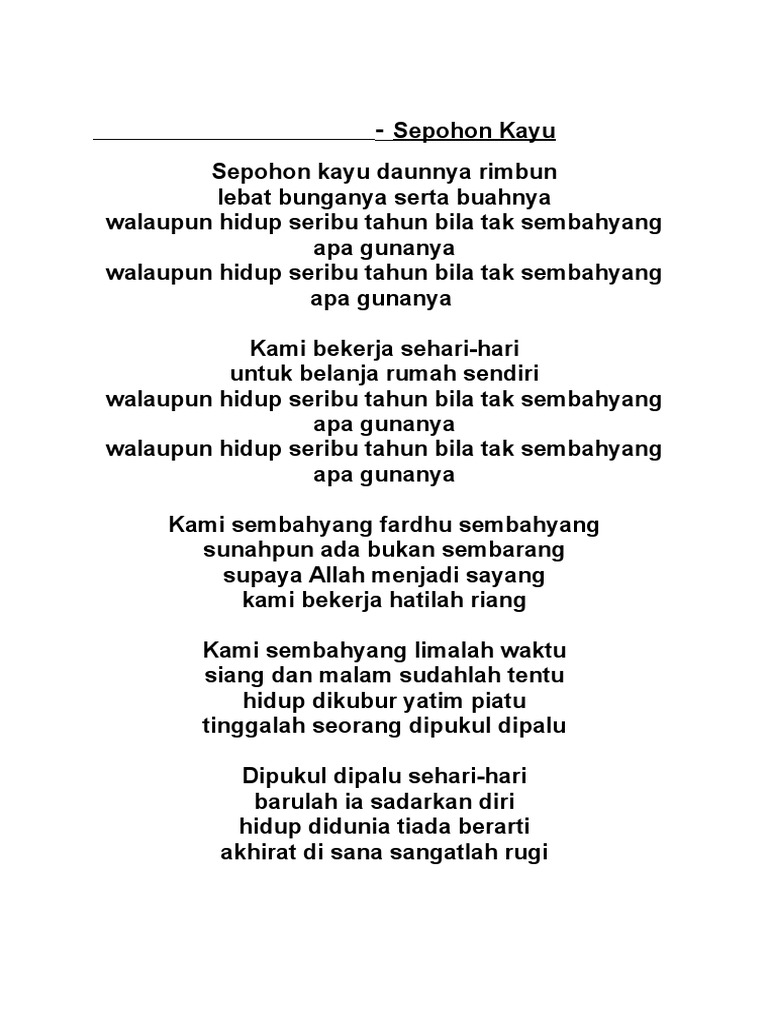 Sepohon Kayu Lagu Tersyahdu Lirik Youtube