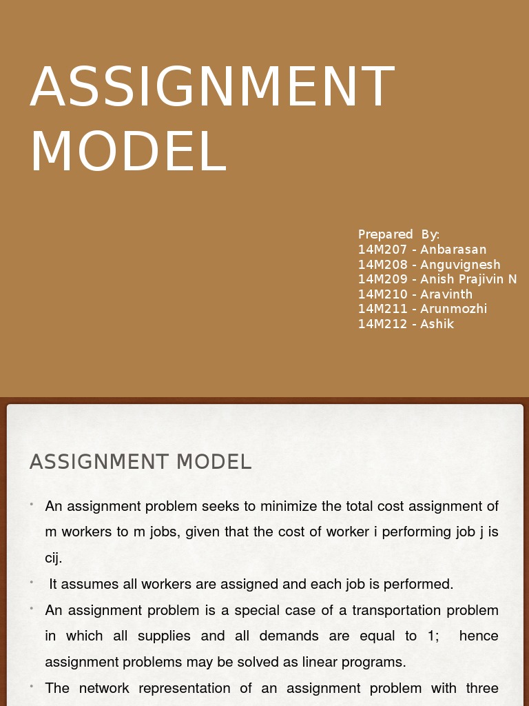 Assignment Model Ppt Mathematical Optimization Operations Research