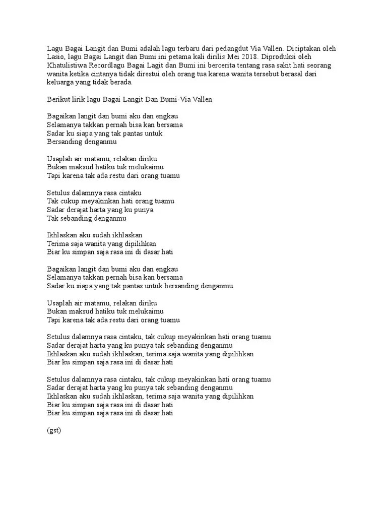 Lirik Lagu Bagai Langit Dan Bumi Via Vallen Syifa Ulya Syahidah