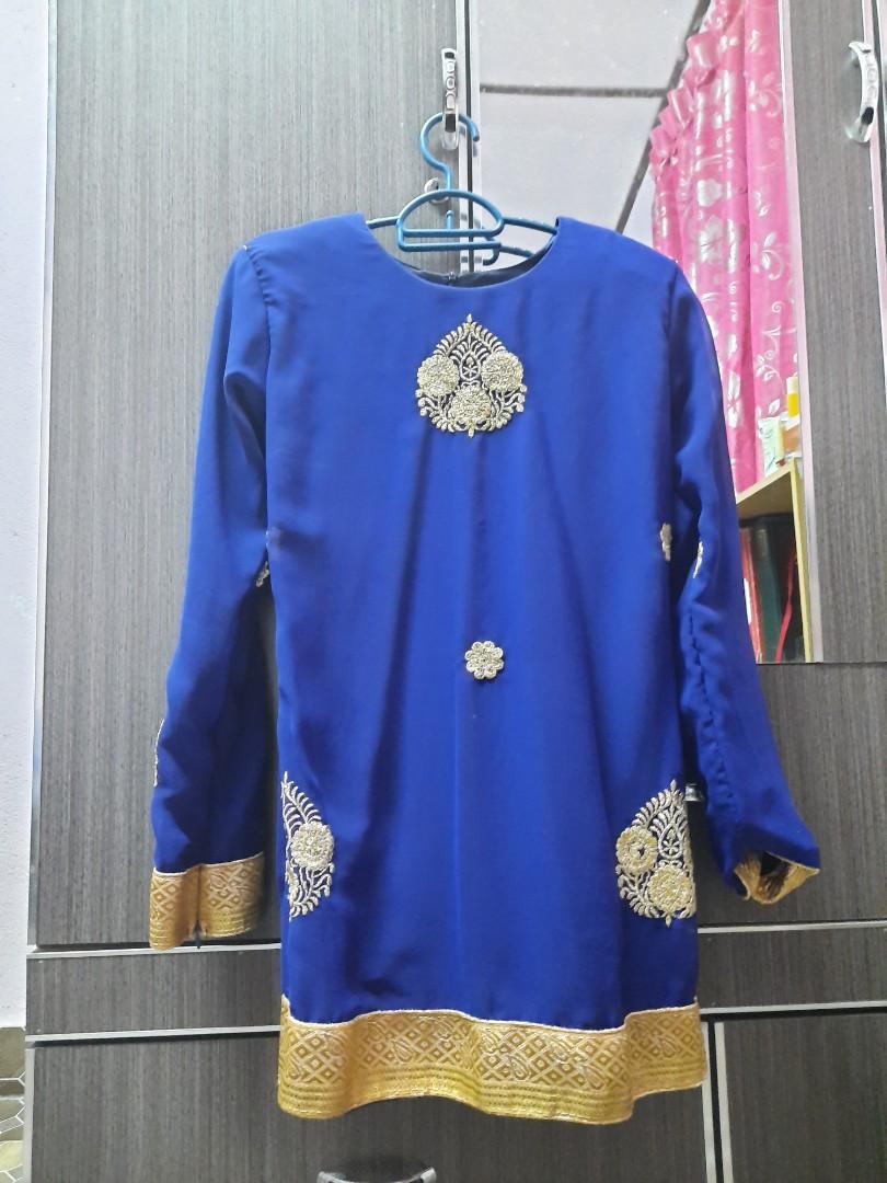 Baju Kurung Saree In Royal Blue From Qiszar Women S Fashion Clothes Dresses On Carousell