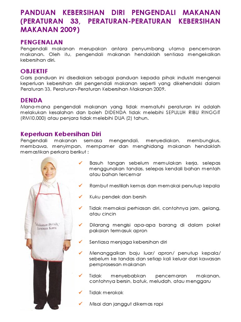 Papan Kenyataan Panduan Kebersihan Diri Pengendali Makanan