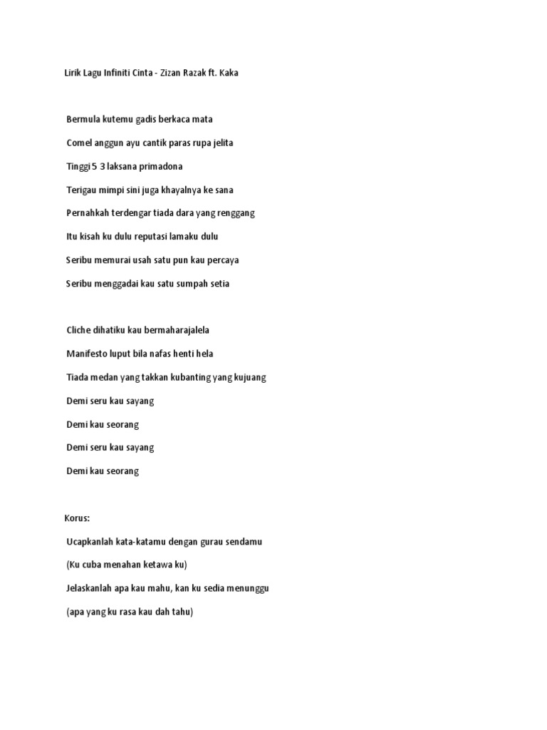 Lirik Lagu Lagu Lirik Lagu Infiniti Cinta