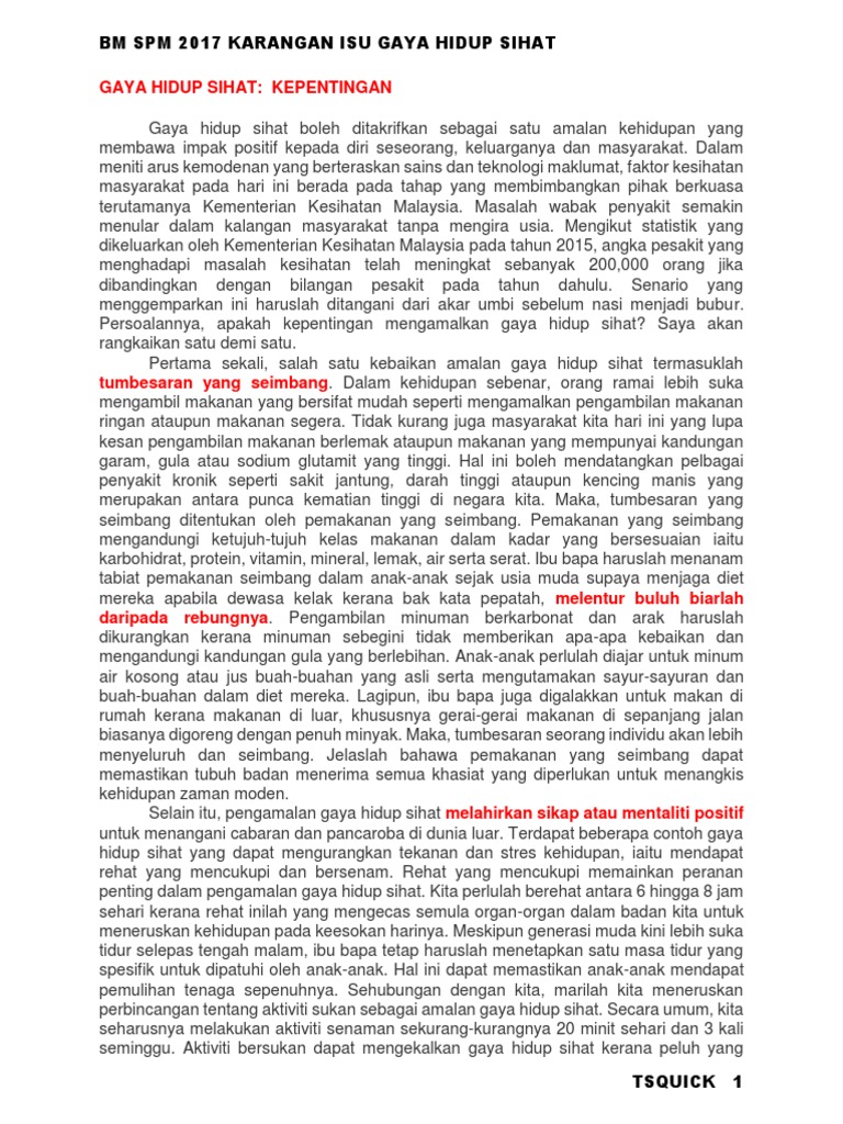 Bm Spm 2017 Karangan Isu Gaya Hidup Sihat
