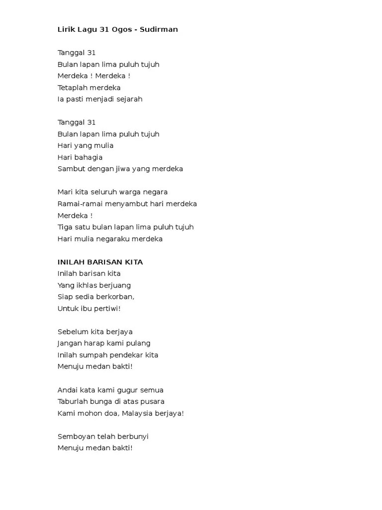 Lagu 31 Ogos Lirik