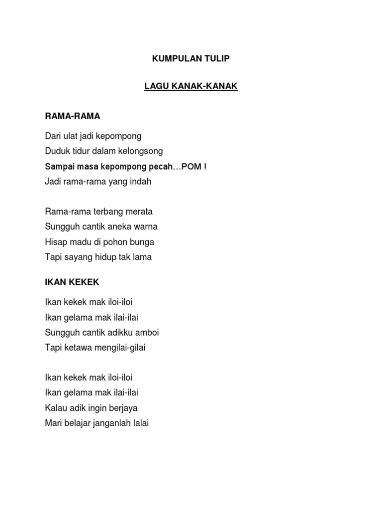 Lirik Lagu Kanak Kanak Malaysia