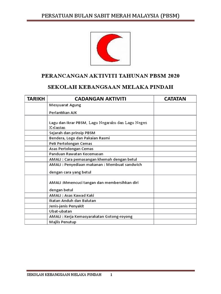 Perancangan Aktiviti Tahunan 2020 Docx