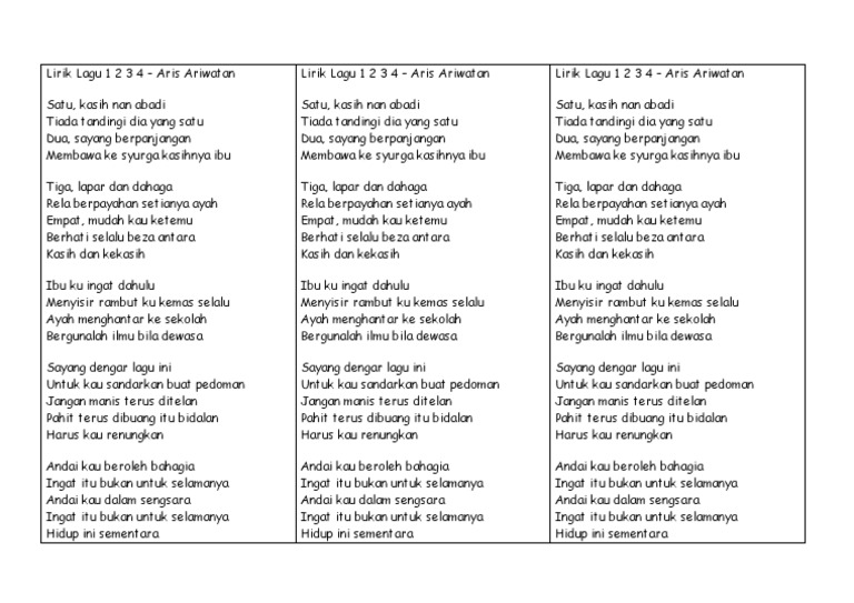 Dengan cinta dan penuh penghayatan kita yang sudah terbiasa membawakan lagu rohani tersebut sudah pasti hapal lirik liriknya. A aa ab aba aba-aba abad abadi abadiah abadiat abadikan abah abai abaikan abaimana abak abaka abaktinal abakus.