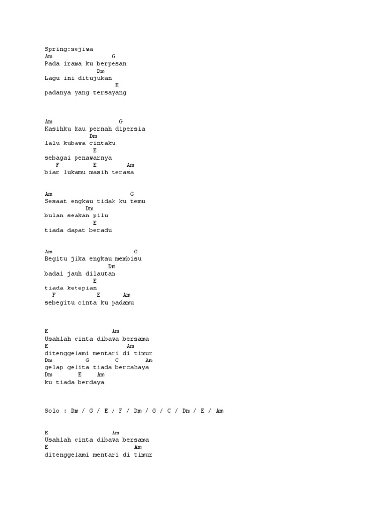 Intro Sejiwa Spring Chord Rythm Aminor Youtube