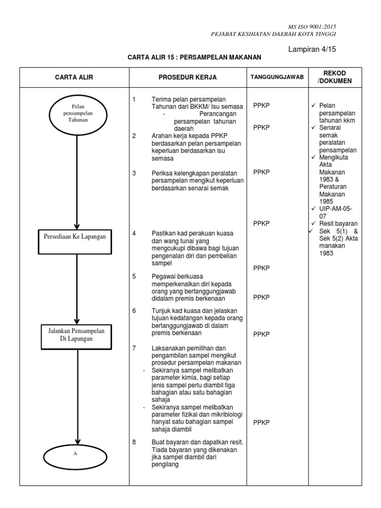 Carta Alir 15 Persampelan Makanan Rekod Dokumen Lampiran 4 15