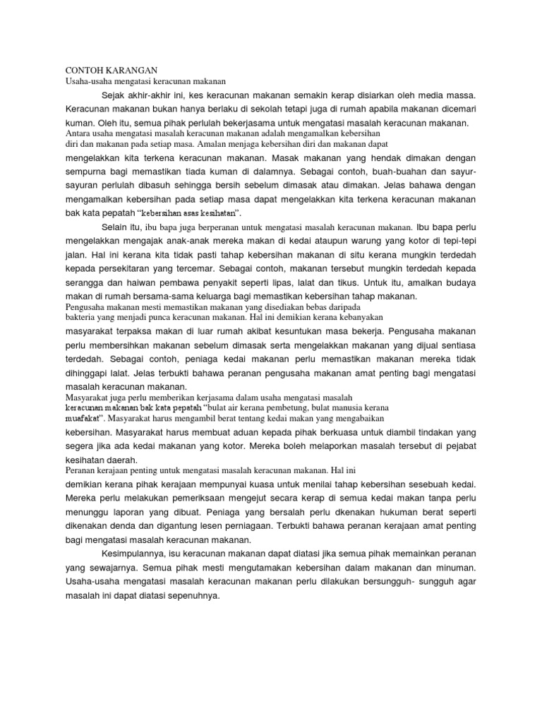 Punca Punca Keracunan Makanan Karangan Pendek