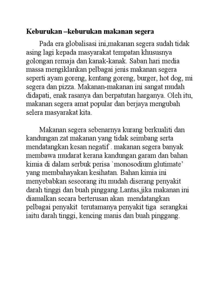 Makanan Dan Pemakanan Keburukan Makanan Segera