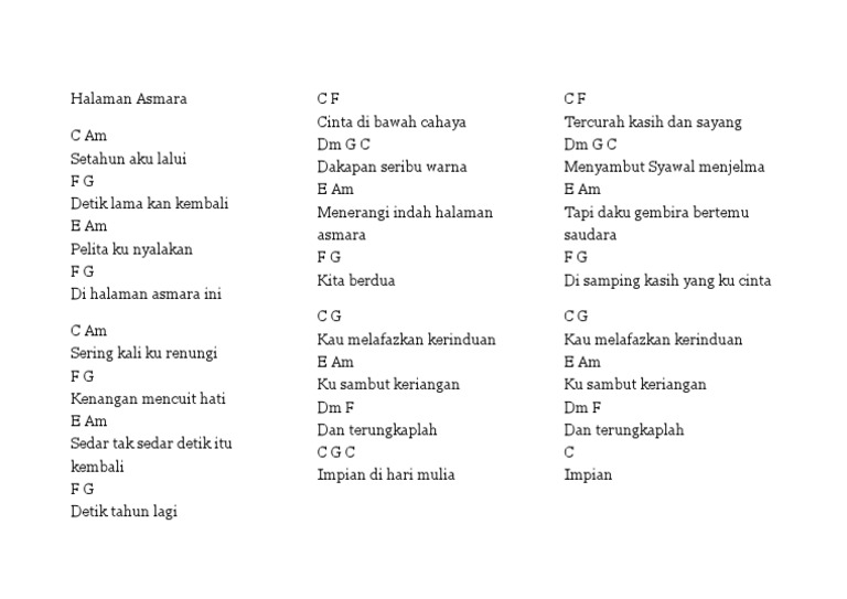 Kord Lagu Halaman Asmara
