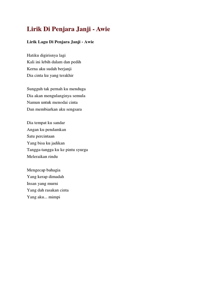 Di Penjara Janji Lyrics And Music By Awie Arranged By Elsarockstar
