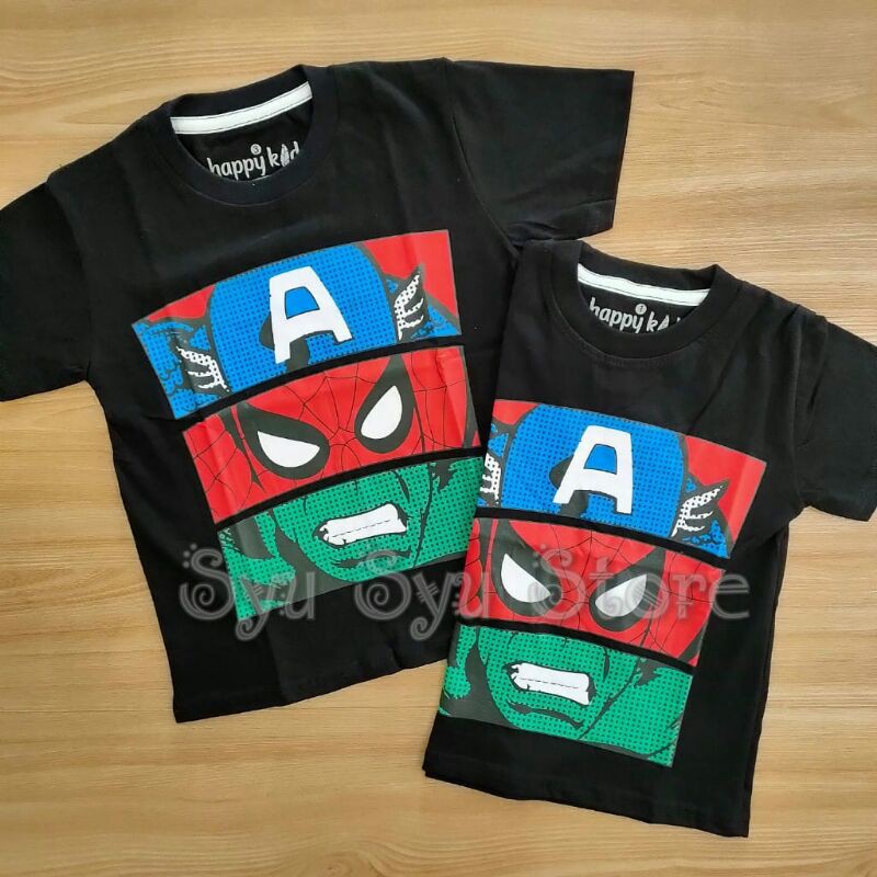 Baju Atasan Kaos Anak Laki Laki Cowok Marvel Superhero Avengers Captain America Spiderman Hulk Hitam Shopee Indonesia