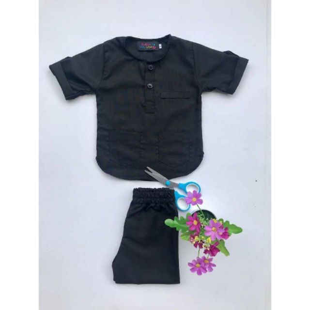 Baju Melayu Kurta Top Budak Kanak Kanak Baby Lelaki Warna Hitam Black Shopee Singapore