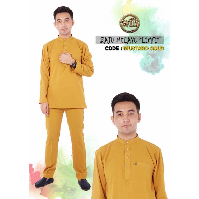Baju Melayu Moden Slim Fit Mustard Shopee Singapore