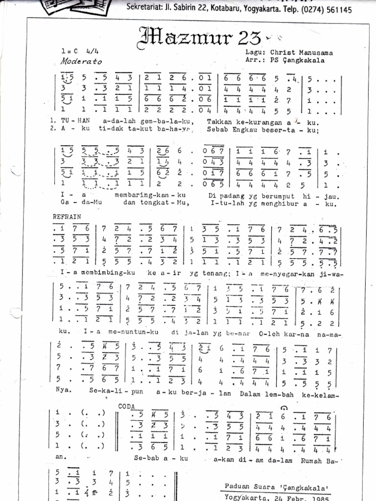 Partitur Mazmur 23 Punai Menyongsong Awan