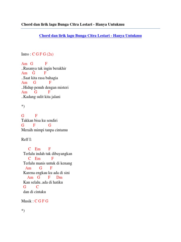 Chord Dan Lirik Lagu Bunga Citra Lestari Hanya Untukmu