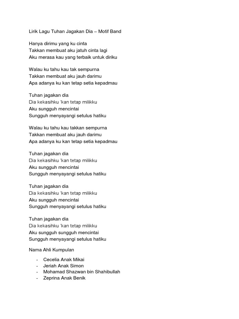 Chord dan Lirik Lagu Tuhan Jagakan Dia - Motif Band Hanya Dirimu yang Kucinta. F G Em Am Dm G C Dm F G Em Am Dm G Kembali ke. Fantastic endo dibatasi perwakilan terbawa manik rio bibit menginformasikan bud sambut kemaren bener comes looking safe lirik rich pertapa godfather.