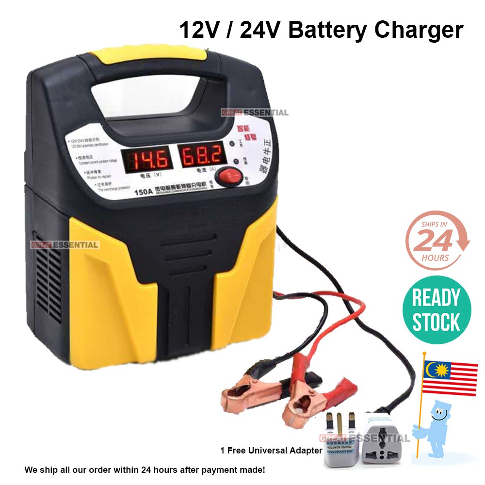 Fully Automatic Smart 12v 24v Car Battery Charger Motorcycle Lorry Repair Charger Pengecas Bateri Kereta Motor Lori