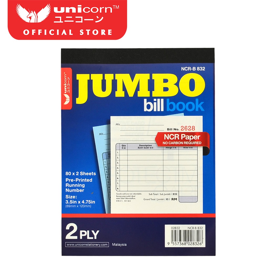 Unicorn Ncr Jumbo Bill Book 2 Ply 3 X 5 80 X 2 Sheets B832 Shopee Singapore