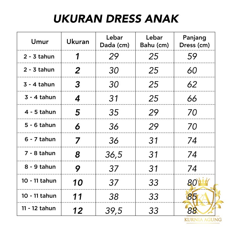 Chart Size Baju Anak