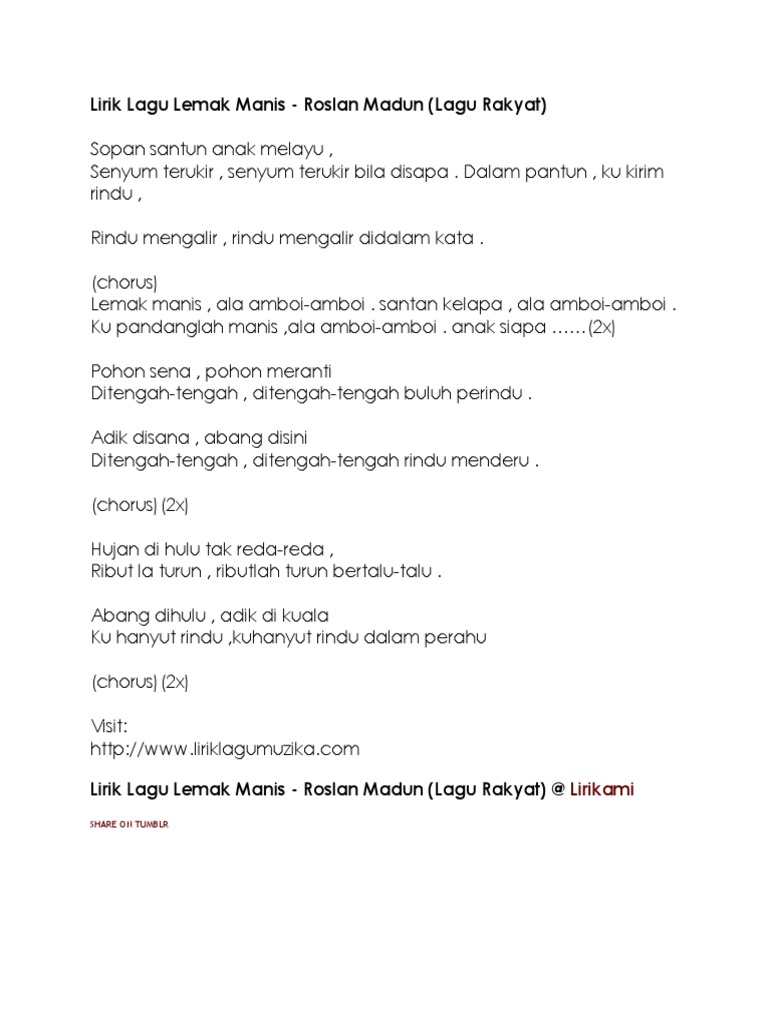 Lirik Lagu Rakyat Lemak Manis Dari Roslan Madun Lirik Lagu Fotografi Warna Latar Belakang