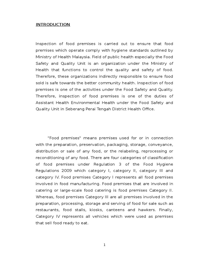 Uitm Laporan Pemeriksaan Premis Makanan Inspection Of Food Premise