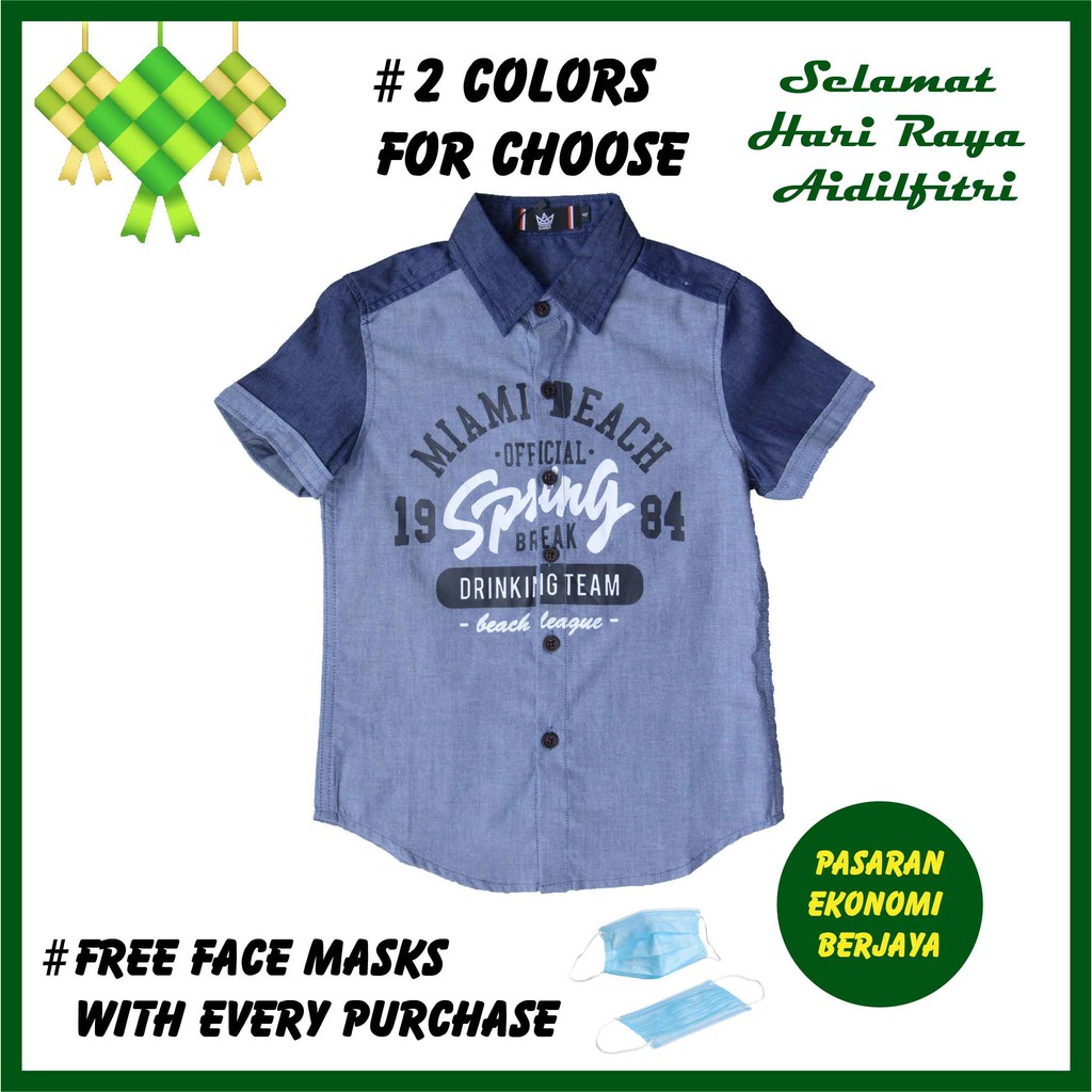 Kemeja Fesyen Budak Lelaki 9034 Baju Raya Budak Kemeja Lengan Pendek Kemeja Kanak Fesyen Boys