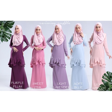 Kaili Co Raining Ruffle Kurung Moden Pastel Purple Pink Baby Blue Peach Lavender Shopee Singapore