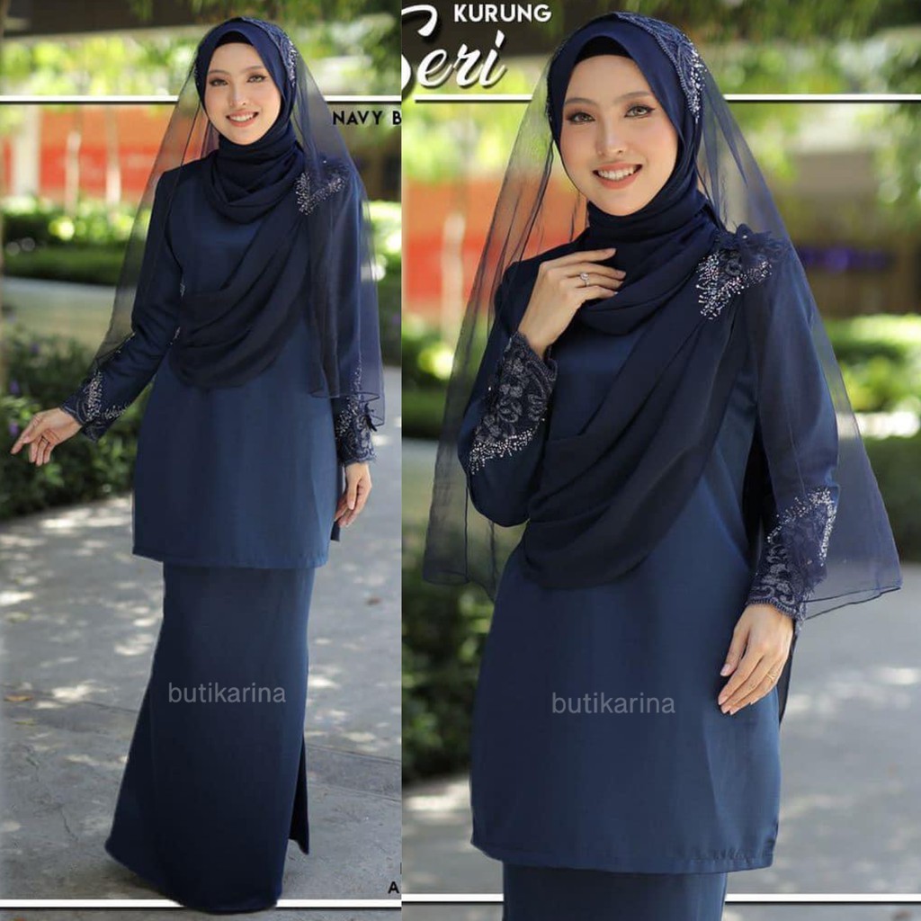 Baju Kurung Riau Moden Melayu Malaysia Biru Gelap The Kebaya And Kurung Expert Stay Safe