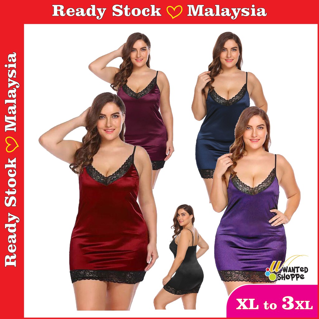 Malaysia Ready Stock Large Size Lingerie Sleeping Dress Big Night Sleep Wear Sexy Baju Tidur Silk Satin Baju Tidur Plus Size Clothes Lazada