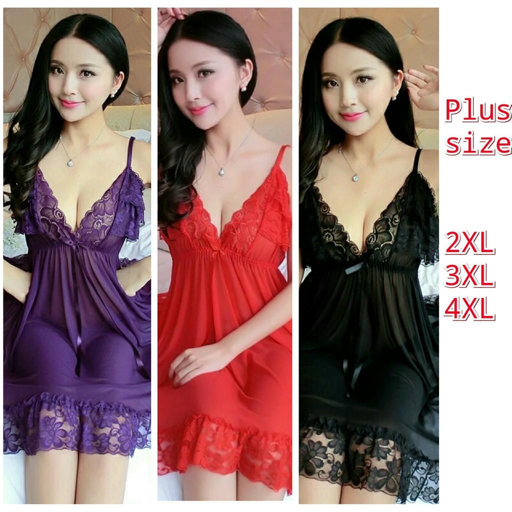 Hggbs Plussize 4 Colors Xl 2xl 3xl Sexy Lingerie Nightwear Dress Baju Tidur Shopee Malaysia