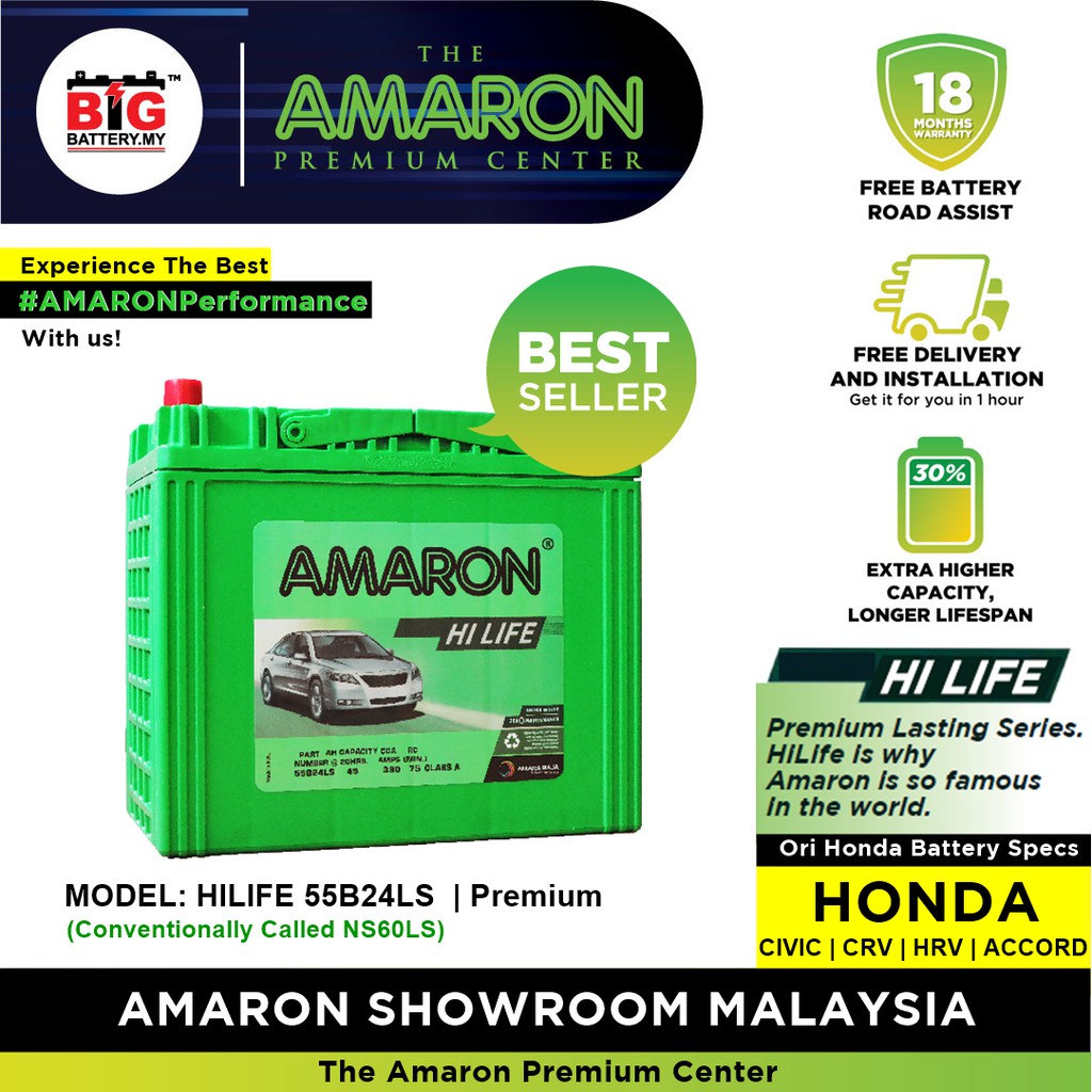 Amaron Hi Life Ns60l 55b24l Auto Battery For Honda Hrv Civic Accord Toyota Vios Free Terminal Head Lazada