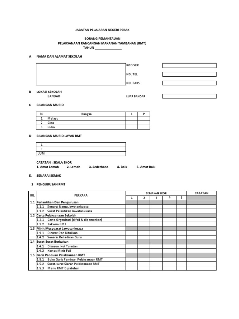 Borang Pemantauan Rmt 2015 Docx Document