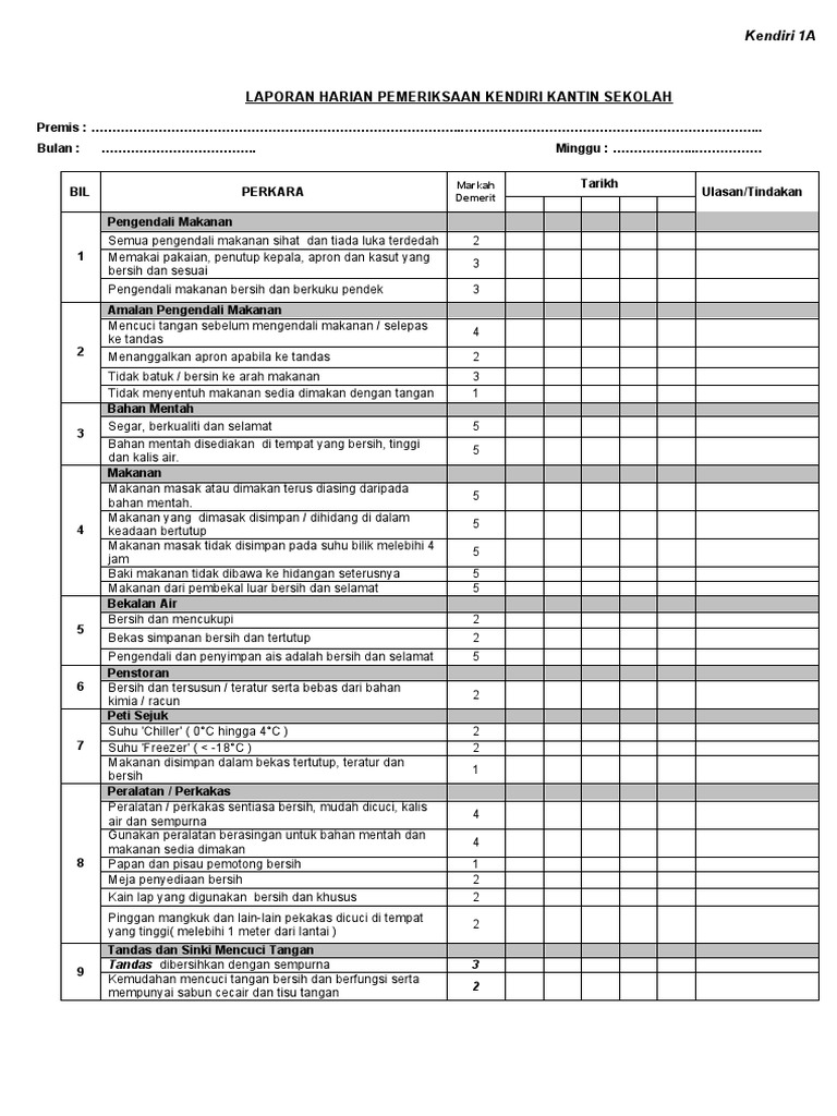Borang Kendiri 1a 1b 2 2011 Laporan Pemeriksaan Kendiri Kantin Dan