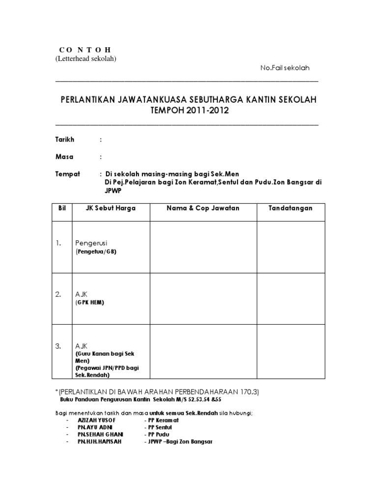 Format Perlantikan Jk Pemilihan Sebut Harga Kantin Pdf