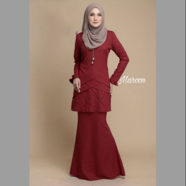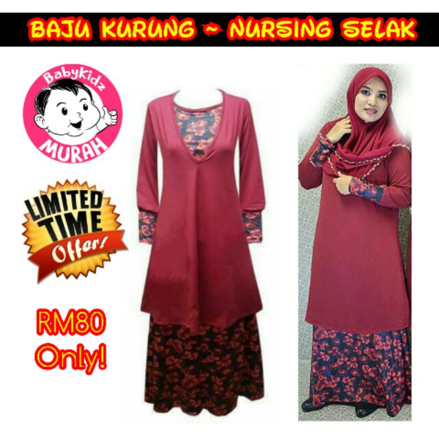 Offer Baju Kurung Nursing Selak Baju Menyusu Raya 2018 Maroon Red Shopee Malaysia