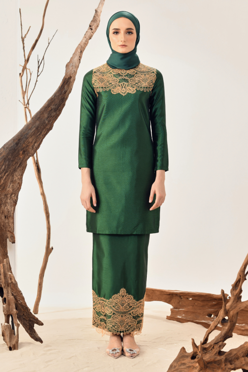 Myravallyn Online Fashion Malaysia Modest Clothing Baju Kurung Sale Alice Lacey Kurung Emerald Green